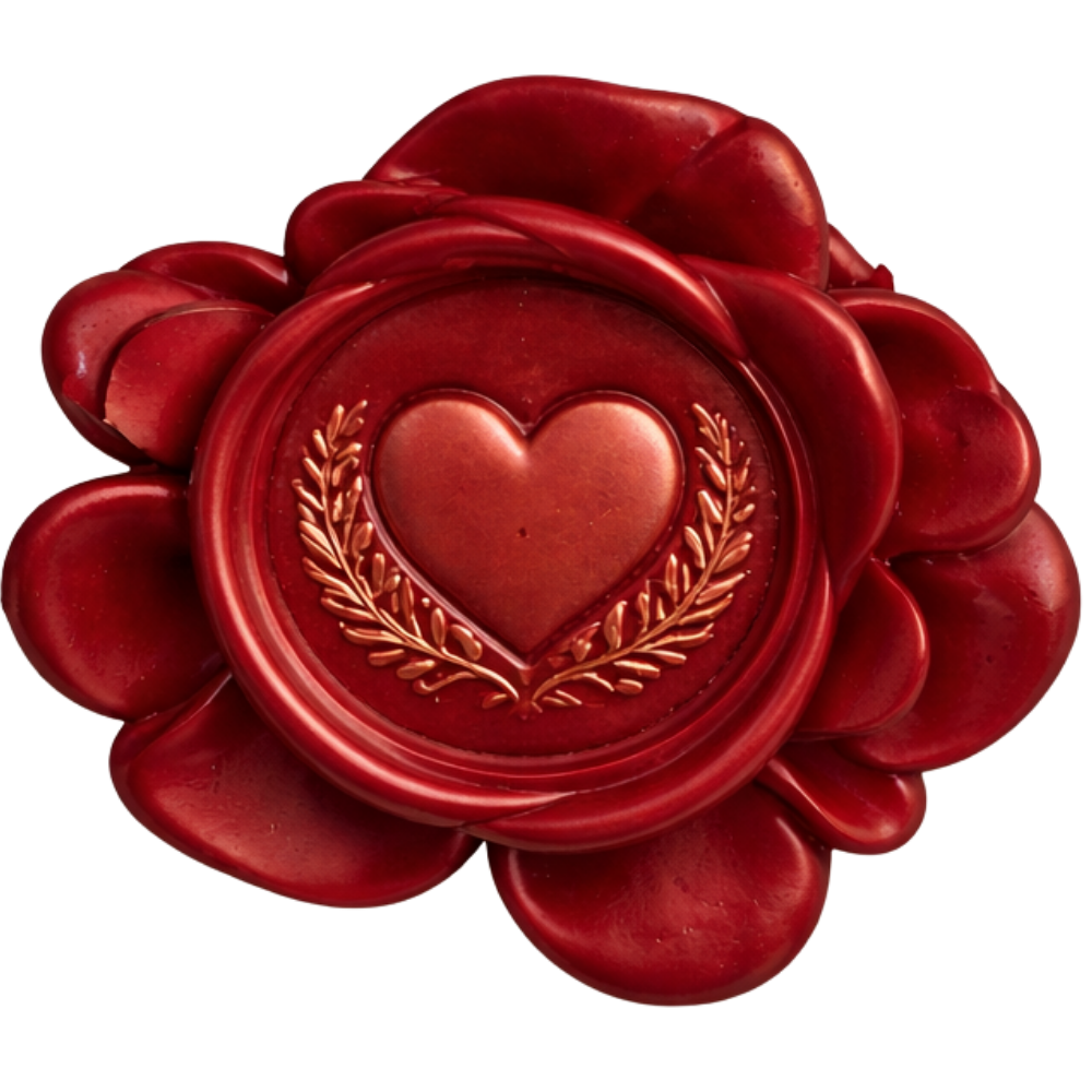 Ein handgegossenes Siegel aus burgunderfarbenem Wachs schützt das Intime und besiegelt das Ewige.